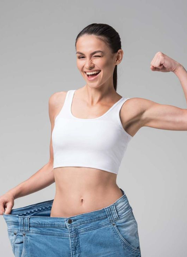She was worried about skin laxity with rapid weight loss. We used microdosing in order to help to optimize the muscle/ fat balance. Kinemyte is needed to do this; otherwise about 25% of your weight loss will be muscle loss.
